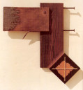 Not swept by the figurative idiom, my concerns with the more abstract qualities within my own category of work, had been constantly and gradually developing. This is evident in a number of paintings and constructions which I had produced at the time. Two such examples are The Trap, dated 1983, and Cross I dated 1985. Towards a more direct reference for a number of reasons is Spatial Structure, also from 1985.
