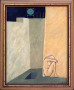 This genre of painting also required a somewhat limited palette, made up of ochres, umbers and siennas with touches and sometimes glazes of prussian blue. Such a specific colour scheme was necessary to create the particular theatrical mood so appropriate to my thematic content at that time. Such works in this metaphysical genre were also included in another personal exhibition which I held in 1984, at Gallerija Fenici housed at the Mediterranean Conference Centre in Valletta.